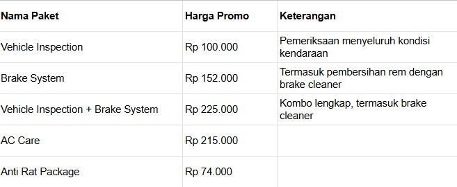 Dengan promo menarik ini, tidak ada alasan lagi untuk menunda service mobil listrik Anda. Pastikan kendaraan Anda tetap prima untuk menemani setiap perjalanan di Bali.